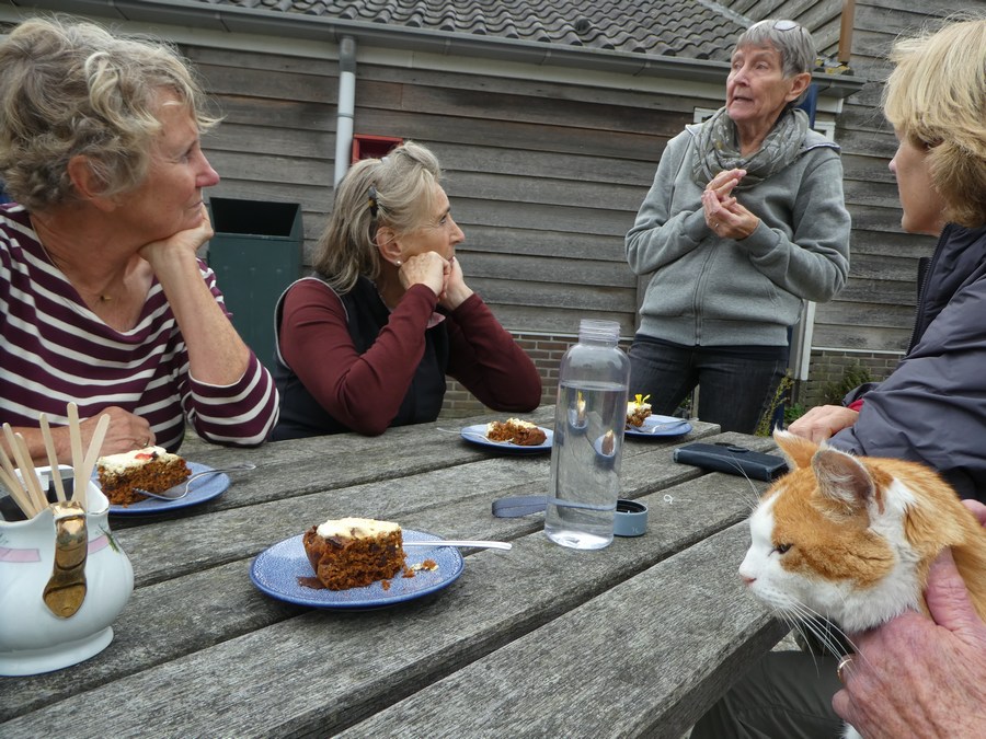 De Stadsdorp-wandeling van zaterdag 27 september 2025 begon in het centrum van Oostzaan waar kunstwerken en bijzondere gebouwen ons verwelkomden. Daarna wandelden we het groene Twiske in, langs de Twiskemolen; een poldermolen die nog steeds in bedrijf is. Onze eerste stop was bij Zorgboerderij De Marsen, waar we ons verlekkerden aan de seizoensgebonden heerlijkheden in de boerderijwinkel. Na koffie met huisgemaakte taart trokken we verder het Twiske in.